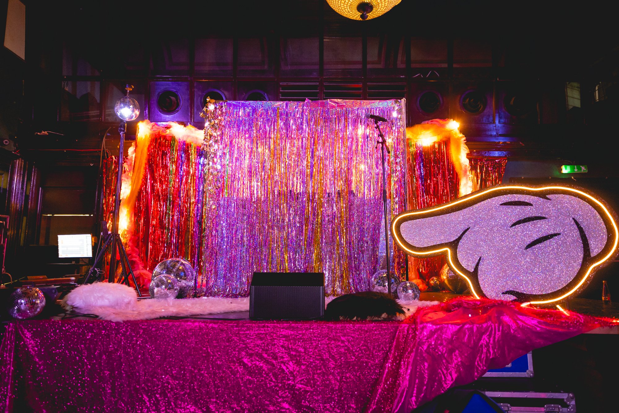 One big massive celebration of joy! Got to coordinate + bring my disco tastic, glitter, festoon neon items from the Decor Prop Box. Love it! )
