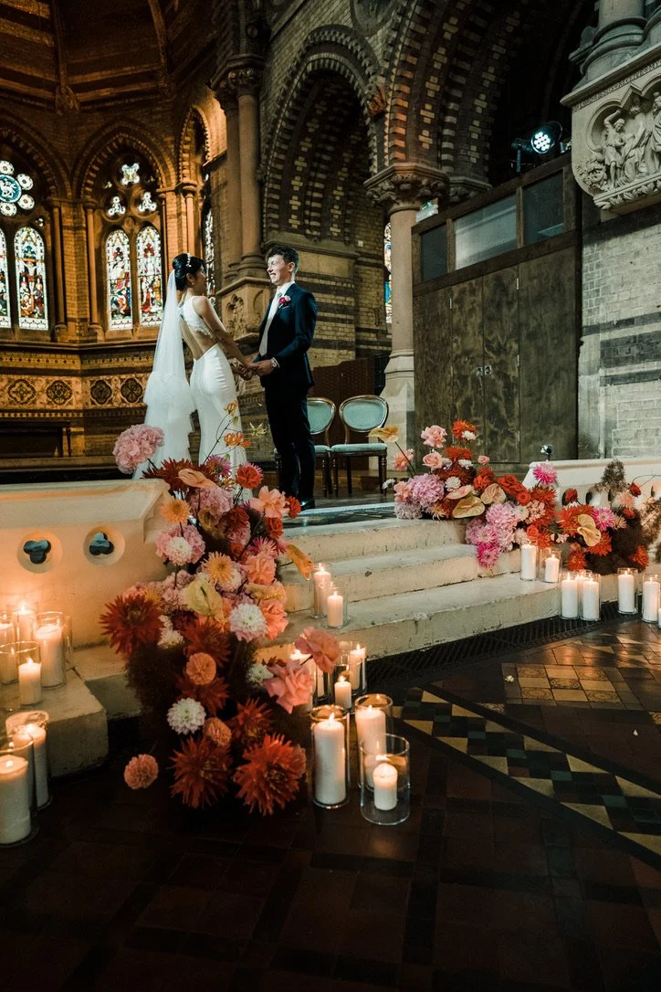 Beautiful oriental vibe Hampstead wedding in Sept 22. Check out the most amazing veil. I was a bit worried about all the candles, but no need! Sin/Rachel is a pro bride! :)